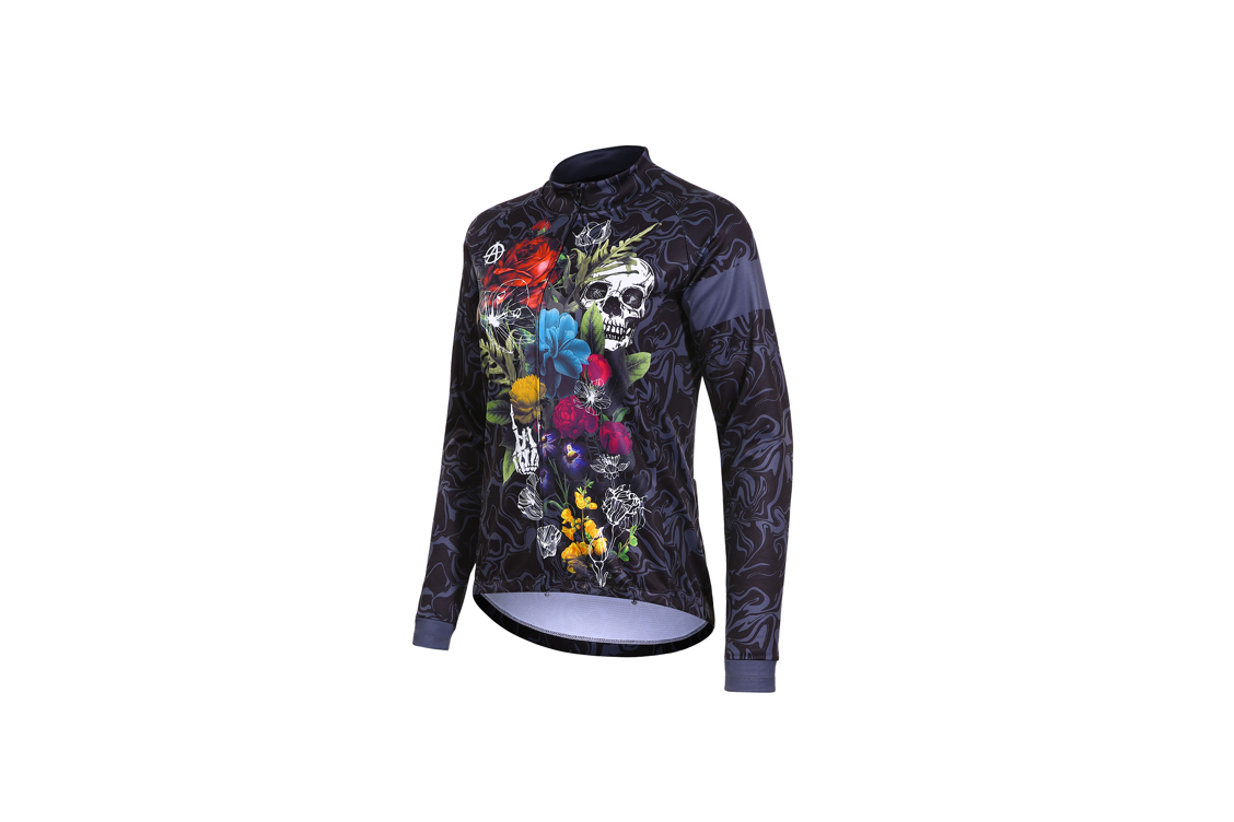 Fahrradtrikots für Herbst und Winter gibt es in vielen Farben und Formen. Für Sportler*innen wichtig, aber auch auf Touren praktisch: Die Rückentaschen für Werkzeug, Telefon und Energieriegel. Wem herkömmliche Designs zu öde sind, findet durchaus Abwechslung: zum Beispiel die Langarm-Trikots New Rose (Frauen) und Rude Boy (Männer) im Punk-Stil von Protective aus recyceltem Polyester (79,95 bis 89,95 Euro).