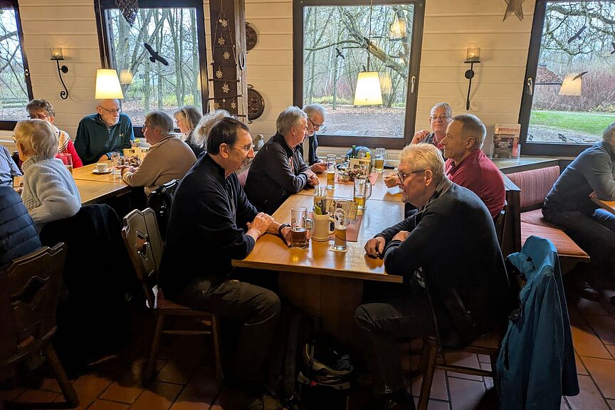 Unsere 25. Radtour startete am Mittwoch den 03. Dezember bei gutem, aber kaltem Wetter. 34 Radler hatten sich zum Grünkohlessen engemeldet. Wir fuhren durch das Ricklinger Holz, an den Hemminger Teichen vorbei und auf den Duwe-Weg zur Leineinsel mit dem Leinewehr. Weiter ging es durch die Leinemasch Richtung Süden, am ehemaligen Radrenn-Stadion vorbei nach Grasdorf. An der Talstraße bogen wir ab zum Wiesendachhaus. Nach einer kurzen Pause, gab es das zum Abschluß geplante Grünkohlessen. Bevor es dunkel wurde, traten wir die Rückfahrt auf direktem Wege nach Hemmingen.